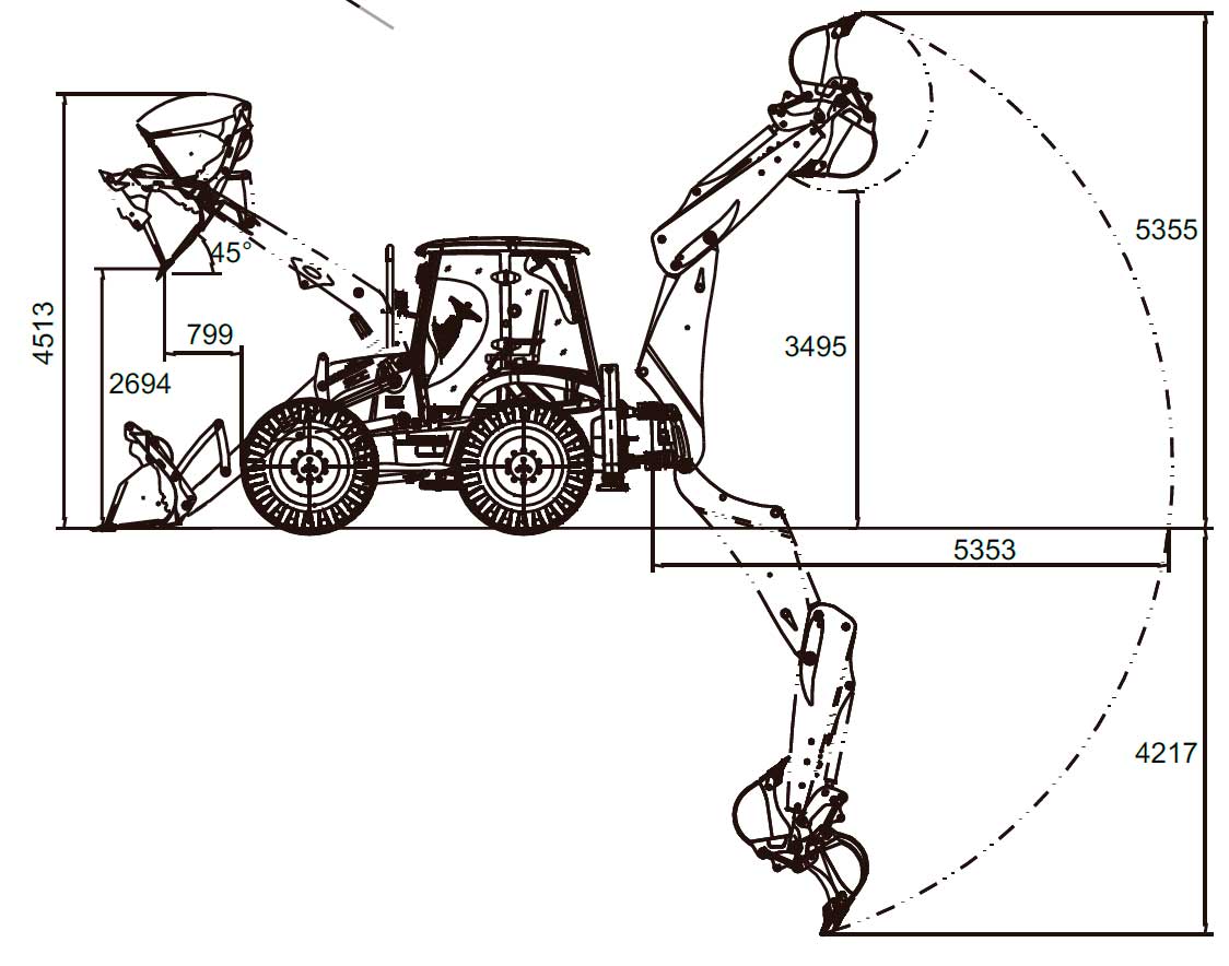 ТЕХНИЧЕСКИЕ ХАРАКТЕРИСТИКИ ЭКСКАВАТОРА-ПОГРУЗЧИКА LONKING 84C