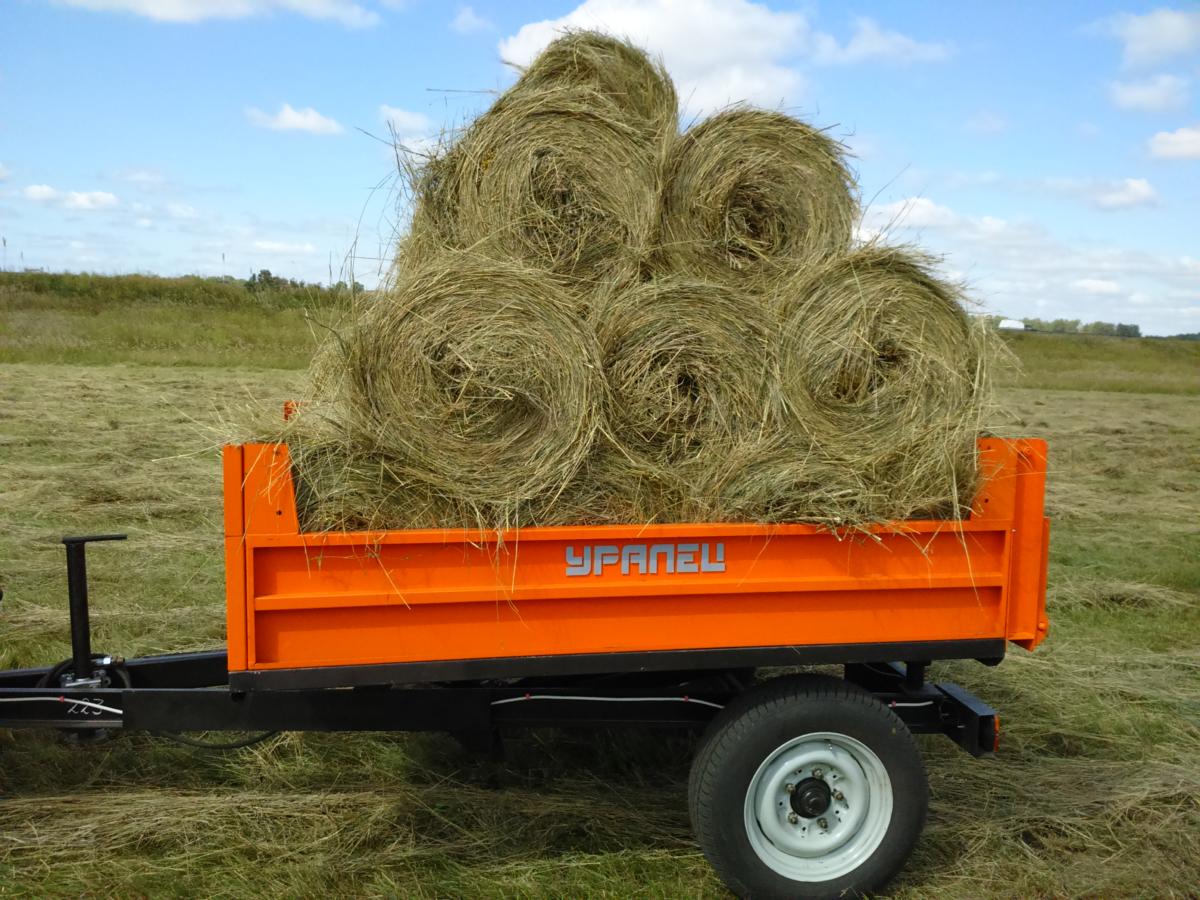- Угол наклона пола поднятой платформы при разгрузке составляет 58° (по ГОСТ должно быть не менее 50°). Поднятие платформы осуществляется от гидросистемы трактора при помощи гидроцилиндра производства ведущего российского завода «Омскгидропривод». Благодаря этому достаточно высока и скорость подъема платформы.
